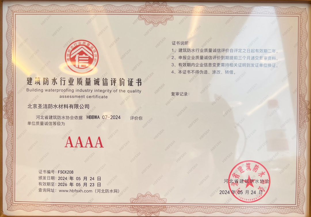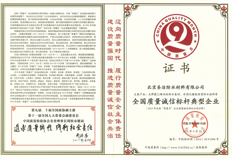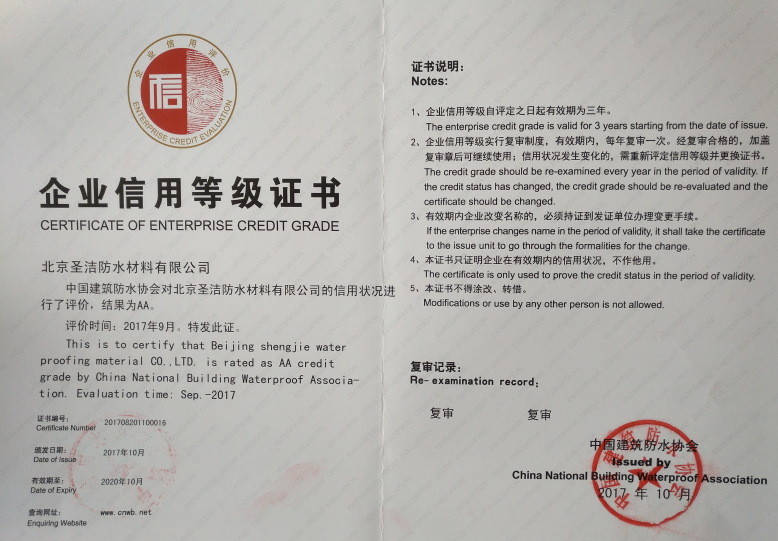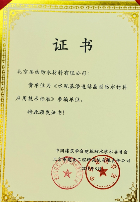 北京圣潔防水材料有限公司成立于1999年,注冊(cè)資金2.53億元。致力于系統(tǒng)解決防水問題的探索和研究,經(jīng)過二十多年的積累與沉淀,圣潔防水已發(fā)展成為集產(chǎn)品研發(fā)、生產(chǎn)、銷售、施工于一體的規(guī)模化公司,是中國(guó)防水二十強(qiáng)企業(yè),擁有國(guó)家專業(yè)防水一級(jí)資質(zhì)。 圣潔防水生產(chǎn)基地占地面積2萬平米,全體員工320人,其中施工人員280人,為員工提供五險(xiǎn)保障,公司是中國(guó)建筑防水協(xié)會(huì)常務(wù)理事單位、中國(guó)建筑業(yè)協(xié)會(huì)建筑防水分會(huì)、中國(guó)建筑學(xué)會(huì)、中國(guó)質(zhì)量檢驗(yàn)協(xié)會(huì)建材專業(yè)委員會(huì)會(huì)員單位,通過了ISO9001國(guó)際質(zhì)量體系認(rèn)證、ISO14001環(huán)境管理認(rèn)證。被中國(guó)建材市場(chǎng)協(xié)會(huì)譽(yù)為“全國(guó)建材系統(tǒng)質(zhì)量、服務(wù)、信譽(yù)AAA企業(yè)”。歷年國(guó)家標(biāo)準(zhǔn)《地下工程防水技術(shù)規(guī)范》、《地下防水工程質(zhì)量驗(yàn)收規(guī)范》和《屋面工程技術(shù)規(guī)范》、《屋面工程質(zhì)量驗(yàn)收規(guī)范》的參編單位,截至目前為止,圣潔防水主編或參編的國(guó)標(biāo)、行標(biāo)、地標(biāo)、團(tuán)標(biāo)已達(dá)106本。